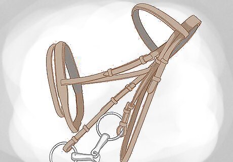 Purchase a bridle for the horse. The bridle provides a means of control. Specifically, the bit helps control the horse, the reins help to turn. Though this is only partly true, your riding instructor will do the teaching, so you only need to know what type is better. ALWAYS KNOW THAT: You do NOT have to use a bit. Do some serious research before putting a piece of metal in your horses mouth. Look up some things on YouTube (Think Like A Horse does a good job of explaining what it does to your horses mental and physical state.) And please, do not get a bit with shanks on them. If you are a true horseman, you should not need leverage to control your animal. There should be a mutual bond between you, not one of hate and pain. Though, if you do want to use a bit, please be gentle and get a snaffle bit. (Please also note to not get a tom thumb bit, they are one of the worst kinds of bits, and just because it has a break in the middle of it does not mean that it is automatically 'kind') There are MANY types of bridles that are better than the one's with bits. There are hackamores and side pulls. They are all good alternatives. The bit and bridle must be proper for the horse, and different bits and bridles must be tried with the horse to find the best combination, as each horse is unique and sensitive to minute changes within the bridle setup. It's usually recommended that this component be handled by a trainer or other person highly experienced with horses, as an improperly chosen bit or poorly adjusted bridle may possibly endanger the horse while attempting to ride. Note that you should have one wrinkle when putting in a bit, or less.