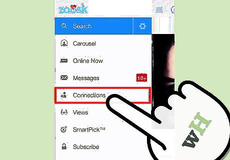 Open your connections. When the new list pops up, tap on “Connections” to open up all of your current Zoosk connections.
