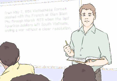 Talk to your teacher. You might be failing because you don't respond well to a certain teaching method. If you are having trouble with a teacher, let them know that you aren't responding to the way they are teaching something. They may be able to help you understand it in a different way. You should also talk to them if you just don't understand the material overall. Find out when they are available and ask for a meeting with them. Ask them questions such as, "I am having a hard time understanding the information in this class. Can you help me understand?" They are the authority on the subject and can help you with the material that is giving you a hard time. They can also help you come up with ways to study for the next exam or ideas for your next paper. They also may be able to give you more notes or readings that will help you figure it out. Make sure you don't depend on your teacher to provide you with a step by step guide on what is on the exams. You need to show effort and understanding or you could fail other classes in the future. Feel free to ask questions both during and after class, if you need to.