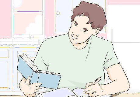Study hard. The only way to bring up a failing grade is to make better grades on the other assignments. This starts with studying at home. You can't learn the information if you don't study it, so try to commit time each night to studying. Turn off distractions such as phones, laptops, TVs, or music. The more focused you are, the more work you will get done and the more information you will retain. When you read for class, make notes about the readings as you do them. This way, you won't have to redo the readings later when it is time for the exam. This may take a little more time as you go, but you will be ready when exam time comes. This will help you make a better grade. About two weeks before a test, start to review your materials. Read and reread your notes. Make yourself flash cards of the material. If you find that you are having problem spots on certain topics, spend extra time on those sections. If you're prepping for a math test, take some time to review your notes and highlight the most important vocabulary and topics.