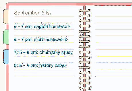 Make a plan. You may be failing due to poor time management. In order to change your grade, you need to introduce more effective time management skills into your life. If you want to bring up your grade, you need to work hard to get all your work done and still have time to study. To do this, lay out the assignments in all of your classes for the rest of the semester. Also lay out any other obligations, such as work, after school activities, or social engagements. Mark each event on the calendar starting with the most important. This should be the work for the class you are failing. Then fill in the rest. This way, you will know exactly what you need to do and how long you have to do it. If your work overlaps too much, try to rearrange your schedule with your boss. Explain what the problem is and see if anyone would be willing to switch shifts with you. You may need to sacrifice some of your obligations. Being over-committed to projects can cause you to fail. You can't skip assignments in other classes, but if it is a school activity or social engagement, you may not be able to do it if you are serious about bringing up your grade.