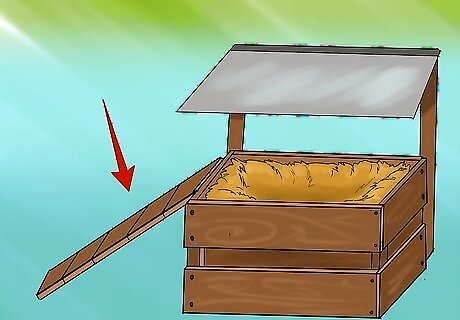 Add a sloped top to the nesting box. You don't want your chickens to roost or poop on top of their nesting boxes—that would be a big mess. Angle the top of the nesting box at about 45 degrees to dissuade hens from perching on or above the nesting boxes.