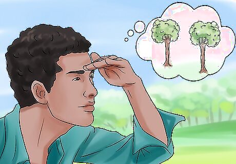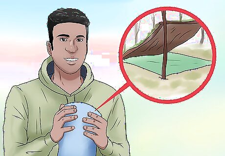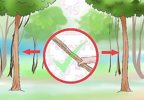 Look for two large trees. You will need to set up your lean-to between two large trees. These are used to support the large branch that makes up the backbone of the lean-to. You want the trees to be relatively close together. You will need to find a branch long enough to stretch between the two trees. Make sure the trees are sturdy. You want trees that can support a small amount of weight.