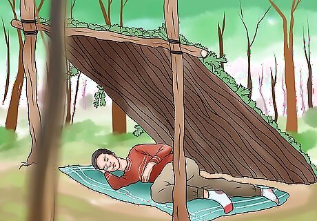 Use your lean-to. You can now use your lean-to as shelter. You can sleep in your lean-to, as long as you make sure to lay padding down on the ground, use a sleeping bag, and wear many light layers of clothing. However, it's more common to use a lean-to as a temporary shelter to use when it's raining or cold outside.