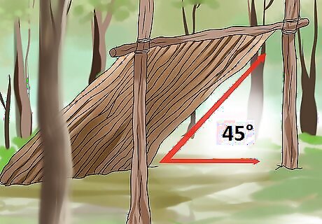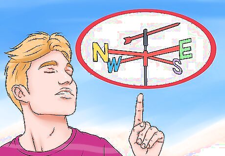 Check what the direction the wind is blowing. You do not want to build a lean-to that's leaning in the direction of wind. Even if the wind is not blowing fast now, it could pick up later and topple your lean-to over. The easiest way to check the wind's direction is to simply try to feel it. Close your eyes and turn your face until you can feel the wind blowing on you. If you can't feel the wind, look for signs. Check which way flags are blowing or look at the direction water flows.