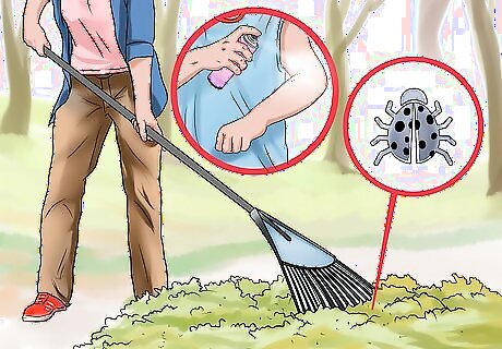 Check your leaves for bugs. You want to avoid bug bites when camping. Before adding your leaves to the shelter, sift through them to check for bugs. If you have a rake, raking through the leaves first may help remove any bugs. Carry insect repellent that contains DEET when camping. This can help prevent mosquito bites.