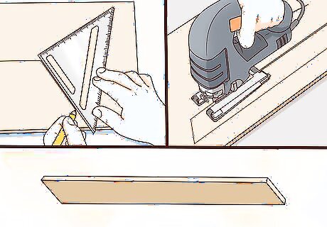 Cut your rafters with a speed square and jigsaw. Use the 45-degree angle on your speed square to cut uniform ends off of your rafters by holding the bottom lip against the wood and cutting at an angle. Screw the lip of each rafter into the side of a single, separate joist that is the same length as your playhouse with #3 wood screws. Space your 6 rafters apart equally on each side of the joist that you’re using as a center beam for your roof. You can use the same sized wood as your joists and just shave the edges off after you’ve installed it. A rafter is any diagonal frame that is sloped against a center beam to form a roof.