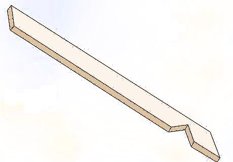 Remove the section of each rafter where it meets the joist. To make your rafters fit perfectly on top of the walls, you’ll need to cut a triangular section out of each rafter so that the wood sits flat at the angle where it meets the joist. Put your rafters on top of the house and mark the location where it sits on top of the joist on each rafter. Use the 45-degree side of your speed square as a straight edge and measuring tool to cut these pieces out of each rafter with a jigsaw.Fun Fact: The triangular cut that fits over your wall joists is called a bird’s mouth.