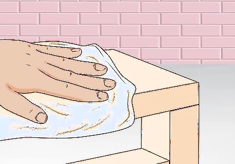 Run a damp cloth across every surface of your house. To prep your house for painting, use a damp cloth to wipe every surface that you plan on painting. This will remove any dirt or loose splinters that will get in the way of a clean paint job. Let your playhouse air dry for 1-2 hours if you used a soaked cloth.