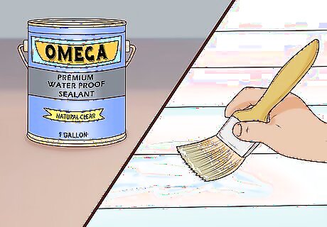 Treat the wood with a waterproof sealant. Since your playhouse is going to be exposed to the elements, use a nylon brush to cover the entire exterior with a waterproof sealant. It may take 2-4 applications of sealant to fully cover the wood. This can prevent damage from mold, mildew, or rot and will prolong the life of the playhouse.