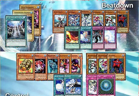 Find cards that will boost any WATER deck such as Warrior of Atlantis, a versatile card you could use to search out "A legendary Ocean", and Aqua Spirit, a Special Summon monster with decent ATK and a good Control Effect. The number of Aqua Spirit(s) should vary depending on your type of water deck, but you should always have 3 Warrior of Atlantis. WATER decks can be used in all 3 general deck strategies: Beatdown, Control or Combo. Choose what type your WATER deck will be.