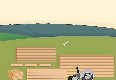 Cut your wood pieces to size if they aren't already. If you didn't get your wood cut to size by a professional, use a circular saw to do so yourself. Mark off the ends to be cut with a ruler and pencil and align your blade above it. Now, clutch the rear handle trigger on the saw and pull the saw down across the wood with your dominant hand. Always hold it firmly in place with your non-dominant hand. Be sure to apply downward pressure with your non-dominant hand to keep the wood still. Always let the shortest end of the piece of lumber hang when cutting lumber to preventing jamming.