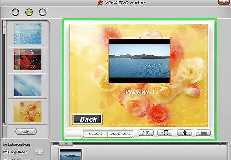 Create the menu. Many DVD authoring programs have basic menu creation tools. These allow you to create a custom menu for your video. You don't need a menu for the video to be playable, as you can have it just automatically start playing when the disc is inserted. In Burn for Mac, click the Gear button and select "Use DVD theme" to enable a basic menu for your DVD. When creating the menu, avoid placing buttons along the very edge of the frame. The edge is often cut off by older TVs and DVD players.