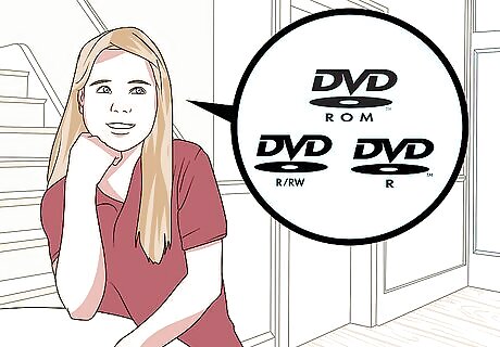 Insert a blank DVD into your DVD burner. If you're creating archives of your data, or don't want someone else overwriting what you've put on the disc, use a DVD-R or DVD-R DL (Dual Layer). If you want to be able to rewrite and edit the content on the disc, use a DVD-RW.