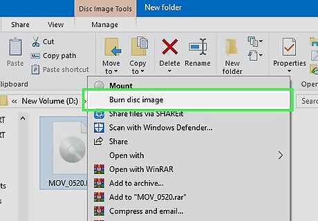 Open the image burning software. The process varies depending on your operating system and installed software: Windows 7, 8, and 10 - Right-click on the ISO file and select "Burn to disc". This will open the Windows Disc Image Burner utility. OS X - Launch the Disk Utility program, which you can find in the Utilities folder. Drag your ISO file into the left frame of the Disk Utility window. Windows Vista and XP, or non-ISO files - Launch your image burning program and load the image file.