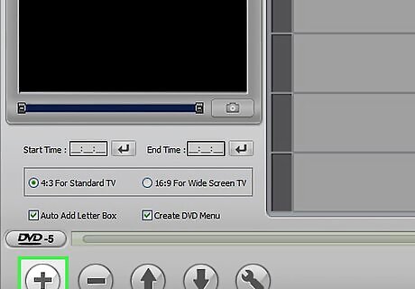 Add your video file(s) to the new project. After starting your new project, you can add your first video file. Most DVD authoring programs support all the major video formats, so you typically don't need to worry about converting the files first. Click and drag the video into the authoring window, or browse for the video file on your computer. You can usually fit one full-length movie onto your DVD, or several hour-long TV episodes.