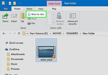 Insert a blank DVD. Once the video is converted and the menu has been created, you can start the burning process. Insert a blank DVD-R into your computer's DVD burner. This is the best disc format for creating video DVDs, as DVD-R is compatible with the widest range of DVD players. Some older DVD players will not be able to play any burned DVDs, regardless of format. If your computer opens the AutoPlay window when you insert the blank disc, just close it.