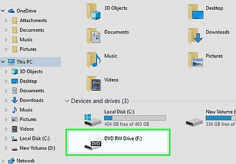 Open the DVD in your computer's file explorer. Most modern operating systems allow you to burn data DVDs directly from your file explorer without any additional software. Opening the blank disc will allow you to add files and folders. In Windows 7 and later, you'll be prompted to select whether you want to use the disc like a USB drive, or like a traditional finished DVD. Selecting "Like a USB flash drive" will allow you to rewrite the disc, even if it isn't a rewriteable disc, but it will only work in Windows. Selecting "With a CD/DVD player" will make the disc act like a traditional disc that will need to be finalized and can only be used once. If you are using OS X, the blank disc will appear on your desktop. Double-click it to open it in the Finder.