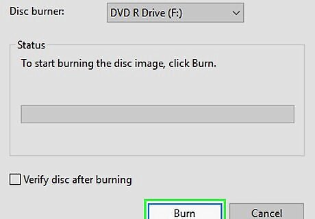 Start the burning process. Click the "Burn" button to begin burning your ISO or other disc image file to your blank DVD. This process will take several minutes, depending on the speed of your burner and the size of your image file.