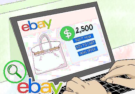 Regularly check marketplace websites for more used options. Make an account with a company like eBay, LetGo, OfferUp, or PoshMark and search for the Birkin you want. Message the seller, negotiate a price, and make arrangements for the exchange. To stay safe during your meeting: Ask for extensive pictures beforehand to ensure you’re getting what you want. Meet up in a public place. Thoroughly inspect the bag to confirm it’s real. Bring a friend with you for a second opinion before you finalize payment.