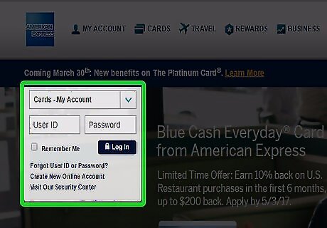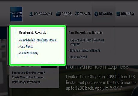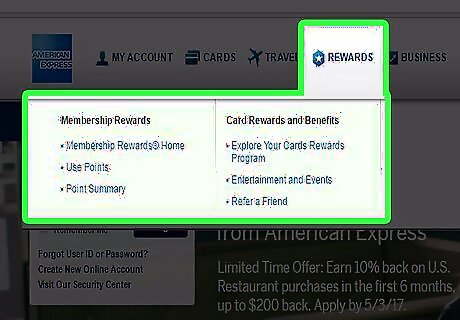 Create an online account for your credit card. Most rewards programs use an online account to redeem miles or points. Visit your credit card company’s site to set up an online account. American Express, for example, has a sign in box in the top left corner. Be sure to create a secure password that you will remember. Online accounts also let you track your spending on the card and may even allow for paying your monthly balance.