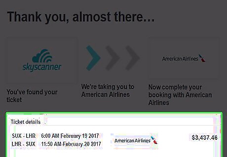 Select the ticket that fits you best. You’ll often want to choose the cheapest option, but amenities and flight dates will also come into play. Choose based on your preferred airline, the dates that work best for you, or seat and cabin preferences. Once you have selected your ticket(s), the site will automatically move you onto the payment stage and you’ll be asked to input your information.