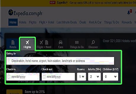 Search for flights on an airline website. Booking directly through an airline often gives you the best prices because there may be lower overhead or booking fees. If you have a card that is affiliated with that airline, you’ll be able to log in with your member number or input it during the payment stage after you choose your flight. You can also use frequent flier miles that you’ve earned with that specific airline.