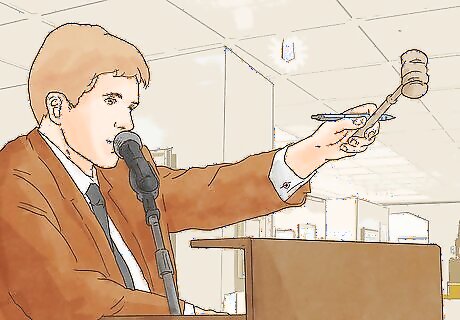 Take ownership if you win. Once you win, you should talk to the auctioneer to get all necessary paperwork that shows you won. In many states, you’ll deposit a percentage of the amount you bid and schedule a settlement day to take place in 30 days. At your settlement day, you pay the remaining balance on the home and receive your trustee’s deed, which you then must record. Often, a court must approve an auction sale before you can take possession.