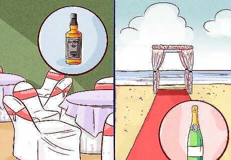 Select the alcohol based on your wedding environment. The location of your wedding reception will also influence what types of alcohol you should serve. If your reception is being held at an event hall that you rented out, people are more likely to drink liquor. If you hold your reception at an antique or a destination wedding, people will drink more champagne and wine.