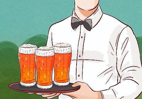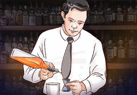 Consult and hire a bartender to serve your guests. A professional bartender can provide helpful insight into how much alcohol you need to buy for your wedding. If you hire a professional, they will serve a measured amount each time they make a drink, which means your calculations will be more accurate. If you allow guests to pour their own drinks or hire an amateur to serve your guests, then they are much more likely to overserve. Bartenders will often require a liquor license to sell alcohol. Search online for a bartending service company to hire a bartender near you. Your wedding venue may provide bartenders for an additional fee.