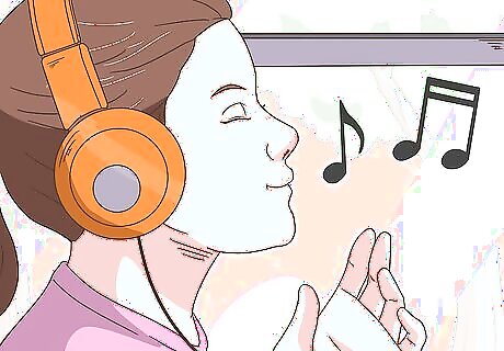 Listen to music. Listening to some of your favorite music may help you to calm down as well. Slow, quiet classical music is generally best, though it's always good to find something you enjoy. If heavy metal or arena rock helps you release tension and ignore your stress, go for it. Keep CDs or a music player nearby, and take the effort to turn it on if you start to feel stressed. Get into the habit of listening to music when driving, walking around, or doing anything that doesn't require you to communicate with others. Singing along can also be a good way to engage your brain in something other than your stress. If you can't get any music to sing along to, humming your favorite tune or just singing out loud without the music can work just as well. Just be sure to take note of your surroundings, and try not to sing so loudly at the office that you distract others.