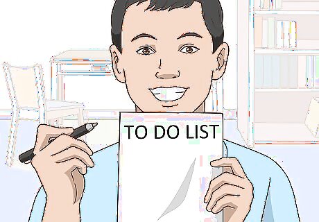 Make a list of things to do. Spelling out all the things you need to get done can help focus your mind on what is out there, and perhaps let you know it is less than you initially feared. Plus, as you accomplish things, you'll be able to cross them off the list, which always feels good. It's possible that your to-do list is too long, that you notice more things on there than you have time to accomplish. This can clarify your working conditions and help give you reasons to turn things down. Your first responsibility is to your own health and time, and if you don't have time for something, it's good to know that and say no to additional tasks.