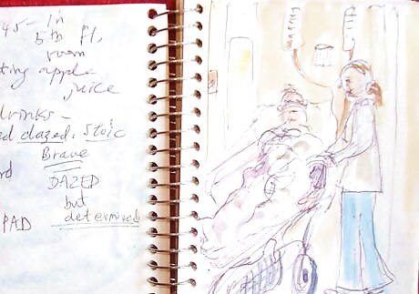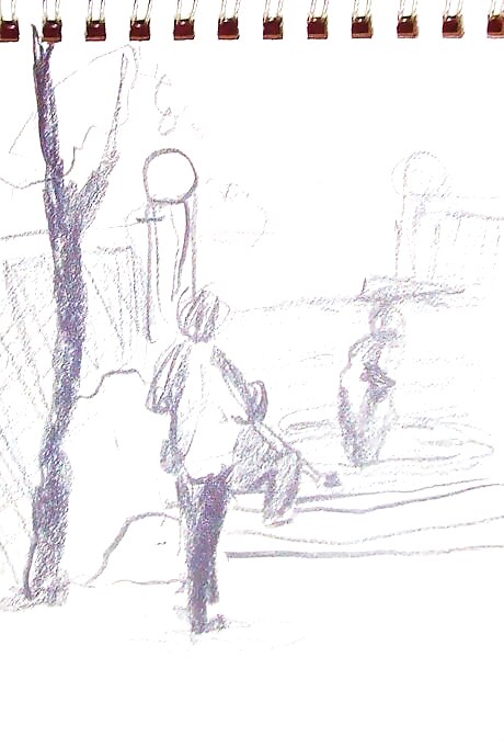 Decide what you want to draw. Find a place to settle yourself. Become a “fly on the wall,” perhaps sheltered from others so you will not be disturbed as you think and work. Engage all your senses and open yourself; let things come to you.