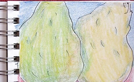 Shade with the pencil. Turn in on its side and rub an area of your sketch. Show where the light is strong on the object as the white of the paper, to where it is in shadow. Shade your textural areas to make them appear almost three dimensional.