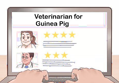 Find a vet that treats guinea pigs. Guinea pigs are considered "exotic animals," so find a vet in your area willing to treat your guinea pig. You can find a vet online or by searching the local yellow pages. Try asking a friend who also owns guinea pigs for a recommendation. Guinea pigs will need yearly vet visits.