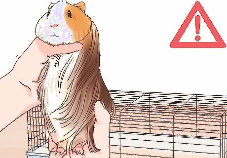 Handle your coronet carefully. When holding your guinea pig, cup your hands around its body so its weight is equally supported. Lift your guinea pig slowly out of the cage to avoid dropping it. While some guinea pigs like to be held, if your guinea pig struggles, only handle it when necessary. It may take time for a new guinea pig to enjoy cuddling with its owners.