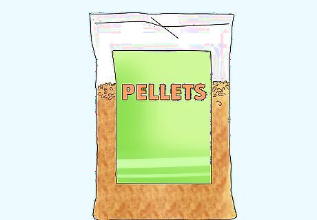 Provide pellets. Guinea pigs need between a quarter and an eighth of a cup of vitamin C-fortified pellets each day (between 30 and 60 mL). Provide pellets in a bowl in your guinea pig's cage. You can buy pellets made for guinea pigs at a pet store or online. Alfalfa pellets are recommended for guinea pigs less than six months old. Older guinea pigs should be switched to timothy pellets. Stay away from gourmet pellets, as they often have unhealthy additives.