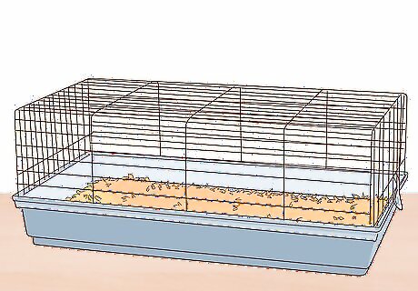 Choose a safe indoor cage. Guinea pigs should be kept in cages made from stainless steel, plastic, or wire. If you end up with a wire floor, invest in a cage mat to cover it. Cages should be at least 7 and a half square feet (about 2 meters) for a single guinea pig and 13 square feet (about 4 meters) for multiple guinea pigs. Use aspen wood shavings or wood fiber for bedding, which you can purchase at a pet store. Any cage type is fine, as long as it's big enough and made of the right material. You can buy a cage online or at a pet store.
