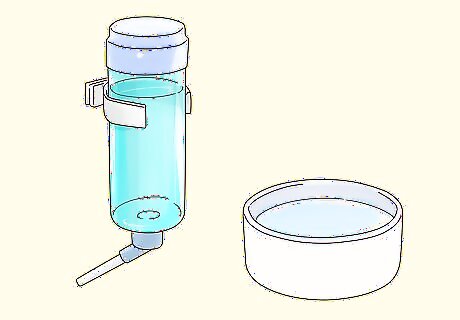 Provide clean water at all times. Keep a water bowl in your cage or hook a water bottle up to the side of the cage. Check the water throughout the day. Refill the water bowl or bottle if it's empty or if the water is dirty.