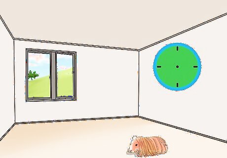 Have floor time each day. Guinea pigs need at least an hour of exercise a day. Have a room in your home that's closed off and guinea pig-safe. Let your guinea pig explore this room for an hour a day. Bring toys like balls to throw for your guinea pig to encourage movement. Remove any potentially toxic plants or items, like toys with small parts. Close off any doors or windows and keep other pets out of the room.