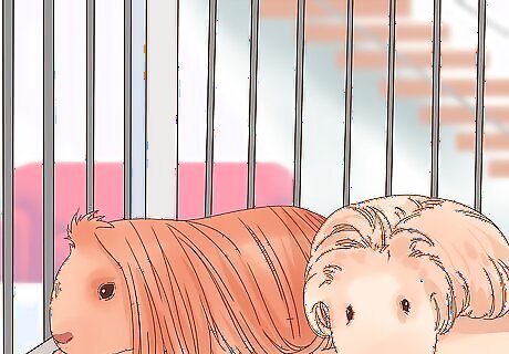 Adopt two coronet guinea pigs together. Guinea pigs are herd animals and generally don't do well alone. It's highly recommended you keep at least two guinea pigs, so try to adopt two coronets at once. If they're not the same sex, make sure both are neutered or spayed. If you get a second guinea pig that your coronet has not previously lived with, introduce them gradually. Keep them in separate cages initially and have supervised interactions until they're calm around one another.