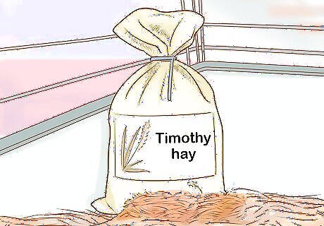 Provide hay. Hay is the most important part of a guinea pig's diet. Guinea pigs should have bunches of hay in their cages at all time for both grazing and bedding. Timothy hay is the best hay option, but you can also add some oat and orchard hay.