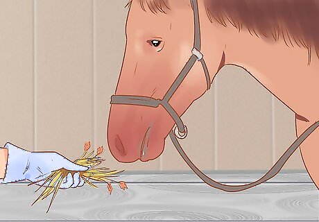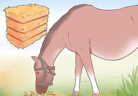 Expect your mare to have a lower appetite because of the foal. As the foal gets bigger, your horse will experience a smaller appetite due to the foal filling her abdomen. However, your horse needs more nutrients than ever, so feed her small, frequent meals. If your mare doesn’t eat enough, her body will naturally start to pull nutrients from her fat stores, muscles, and bones. This weakens her, making it harder for her to care for her foal after birth.