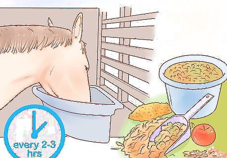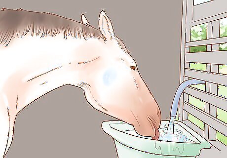 Provide your horse with constant access to fresh, clean water. Clean and refill the bucket every morning and evening when you muck the stall. If you ever notice the bucket is empty or nearly empty, switch to a bigger bucket or add a second water bucket. Make sure your pregnant mare has her own water source. She shouldn’t be sharing with other horses, as the water may be contaminated by their germs.