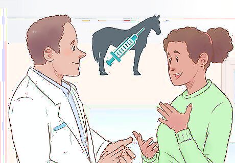Administer vaccines for encephalitis and tetanus within the last 3 to 6 weeks. Your vet will vaccinate your pregnant mare against tetanus and Eastern, Western, and West Nile encephalitis. This will protect both your mare and the newborn foal, who will have a weak immune system. Your vet will help you decide the best time to administer the vaccines to your mare. Normally, they’ll do it in the last month of pregnancy. However, they may adjust the schedule if your mare needs more vaccinations.