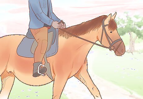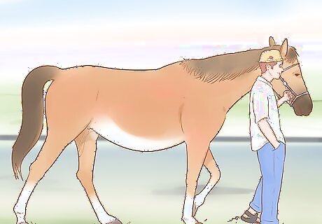 Minimize her exercise during the first 60 days of pregnancy. In the beginning of the horse’s pregnancy, there’s a high risk that the embryo will die or be reabsorbed. Keep the horse relaxed and minimize her activity. After the first 60 days, she can return to normal activity. Don’t ride your horse during this time.