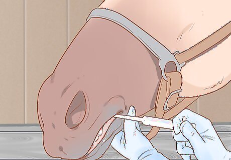 Deworm your pregnant mare every 2 to 3 months or as advised. Mares are very susceptible to worms, which can also affect the growing foal. Most dewormers are administered orally using a syringe or by mixing it into the mare’s food. You should deworm the mare 2-3 days after the foaling to protect her milk, regardless of when her next deworming is scheduled. Most dewormers are safe for use on pregnant mares, but always read the label to make sure. If you have any questions or concerns, call your vet for assistance. If you normally deworm your mare more often than this, stick to her regular schedule.