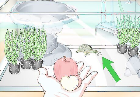 Use fruit sparingly as a treat. While most turtles love fruit, only give it to your pet occasionally as a treat since it doesn’t provide as much nutritional value. Feed your turtle pieces of berries, grapes, melon, or apple every 3rd or 4th meal, for instance. Cut the fruit up into tiny bite-sized chunks to make it more manageable for your pet.