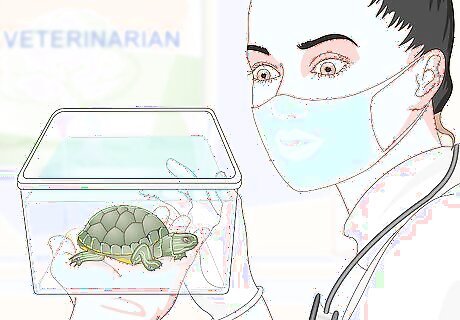 Take your turtle to the vet for an annual checkup. Even if your turtle seems fine, have it examined by a vet once a year. They’ll be able to make sure your turtle is healthy and give it any special care it needs. If it’s your first time going to a vet, call ahead to make sure they treat turtles or reptiles. Be aware that the average cost of a vet checkup is $45 to $55. However, if your turtle needs special treatment, that cost will go up.Tip: To find a good vet near you, ask for recommendations from your friends who are also pet owners or read reviews online.