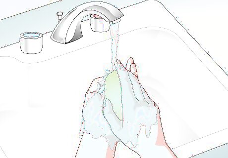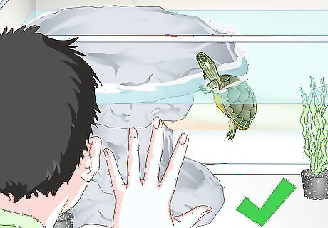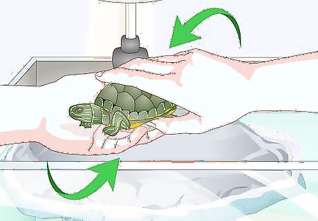 Wash your hands before and after handling your turtle. Always rinse your hands with soap and water whenever you touch your turtle. This prevents you from passing germs to your turtle and from your turtle spreading harmful bacteria, mainly salmonella, to you. To be extra careful, wash your hands before and after touching anything in the turtle’s tank, too.